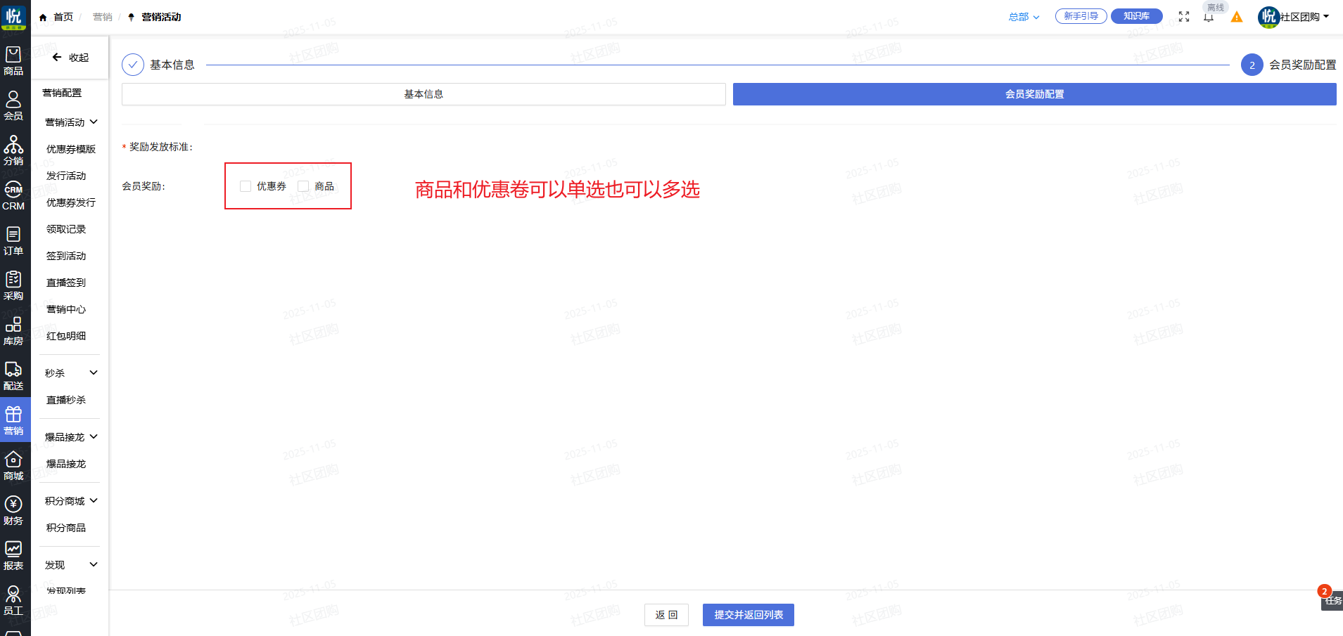 4.选择【优惠卷】和【商品】,可以多选也可以单选
